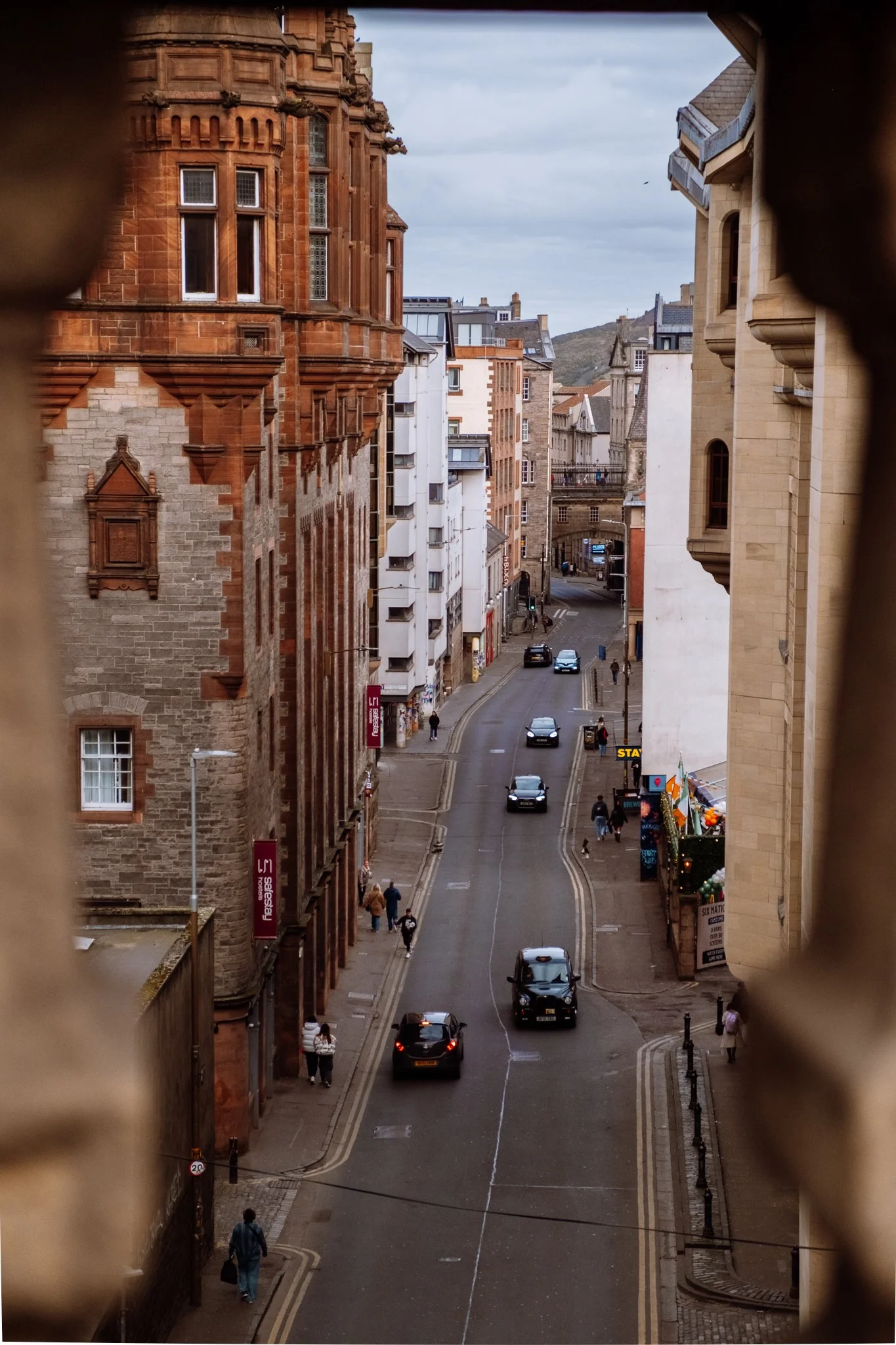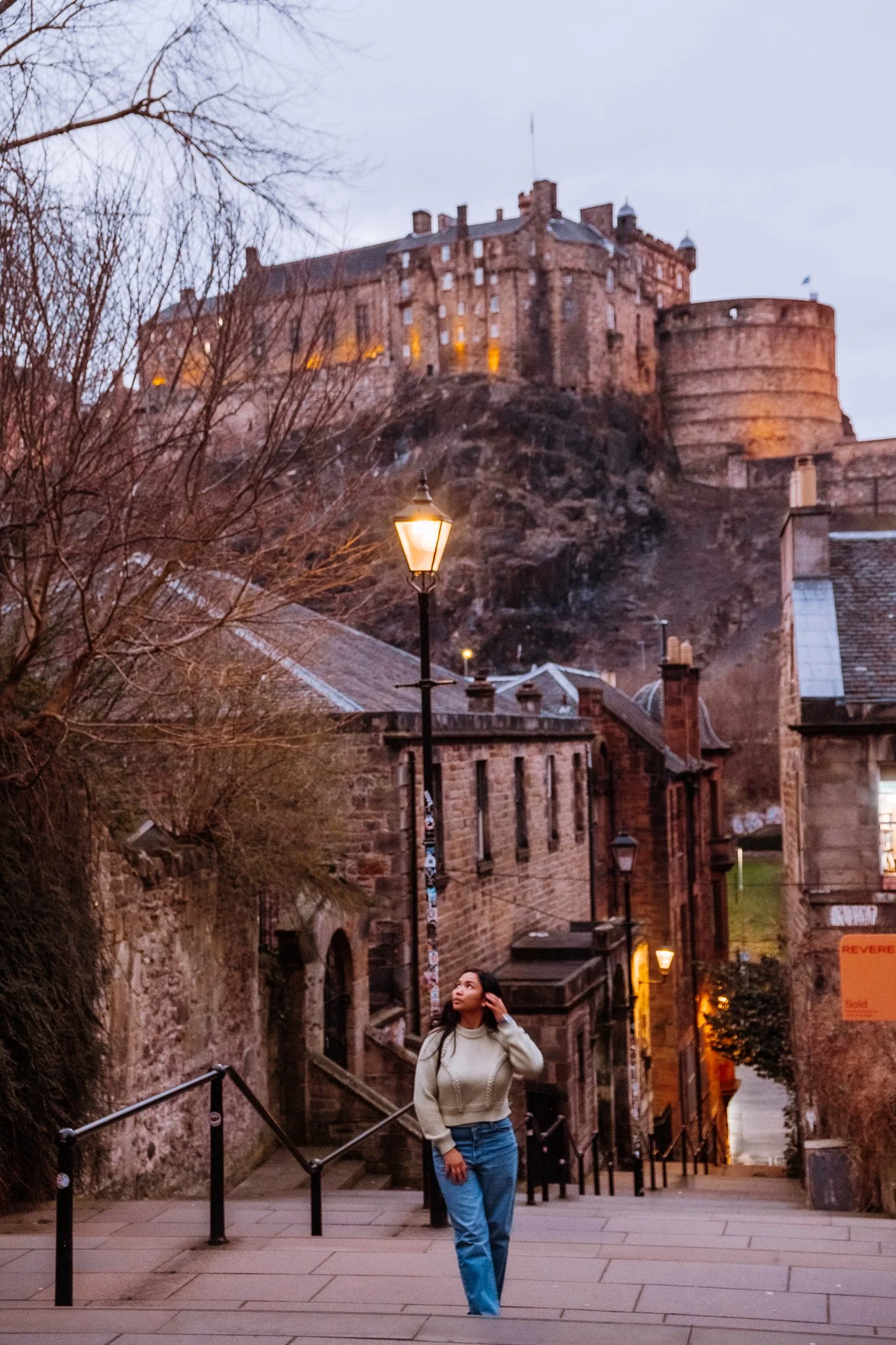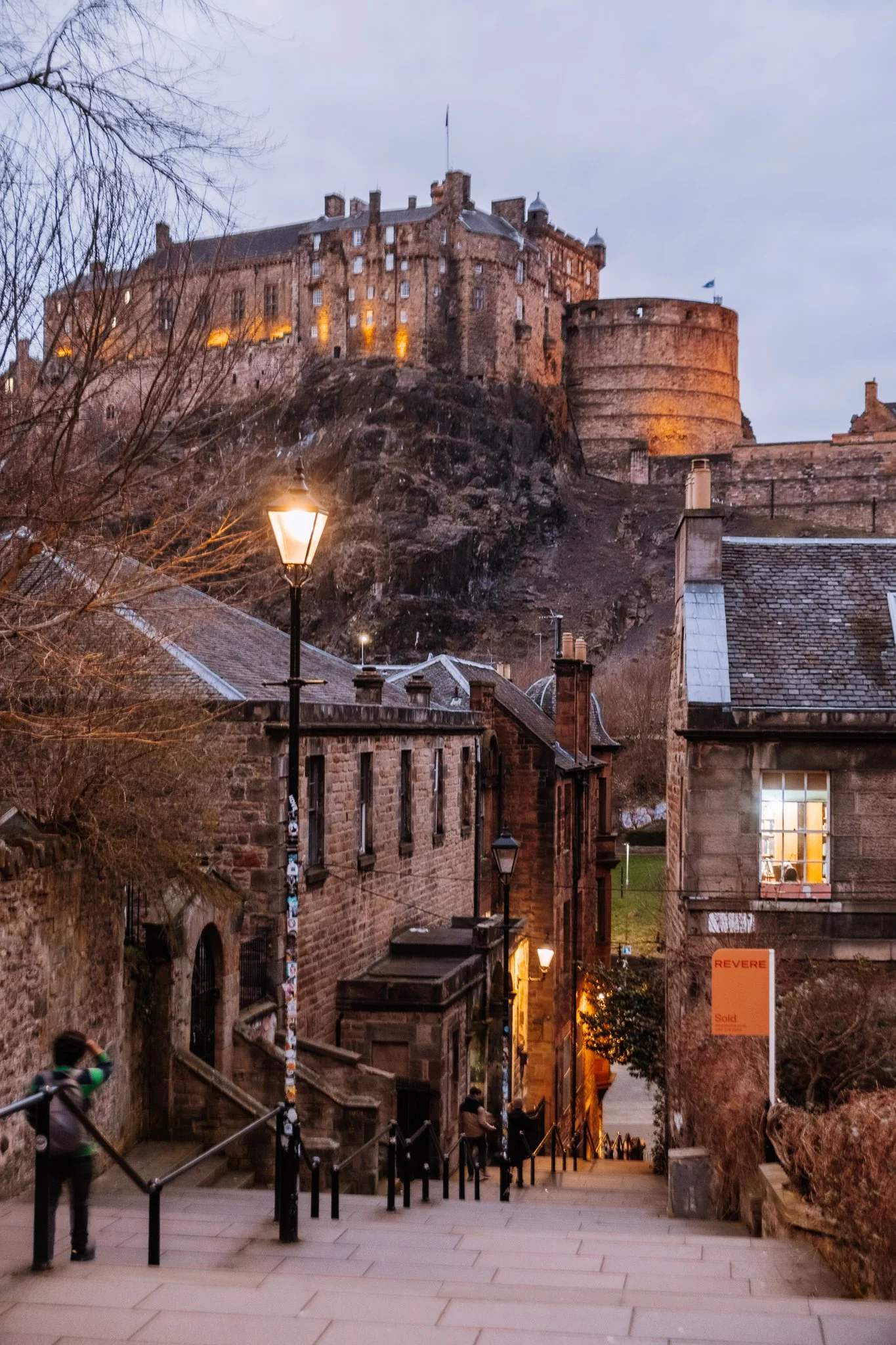 At the Grassmarket area, you might stumble upon one of the most gorgeous viewpoints in the city, the Vennel view. It offers a dramatic picture of the stairs and beautiful buildings with Edinburgh Castle in the background. It’s a pretty famous photo spot, so it can get busy. I recommend visiting during sunrise or a little after sunset.
