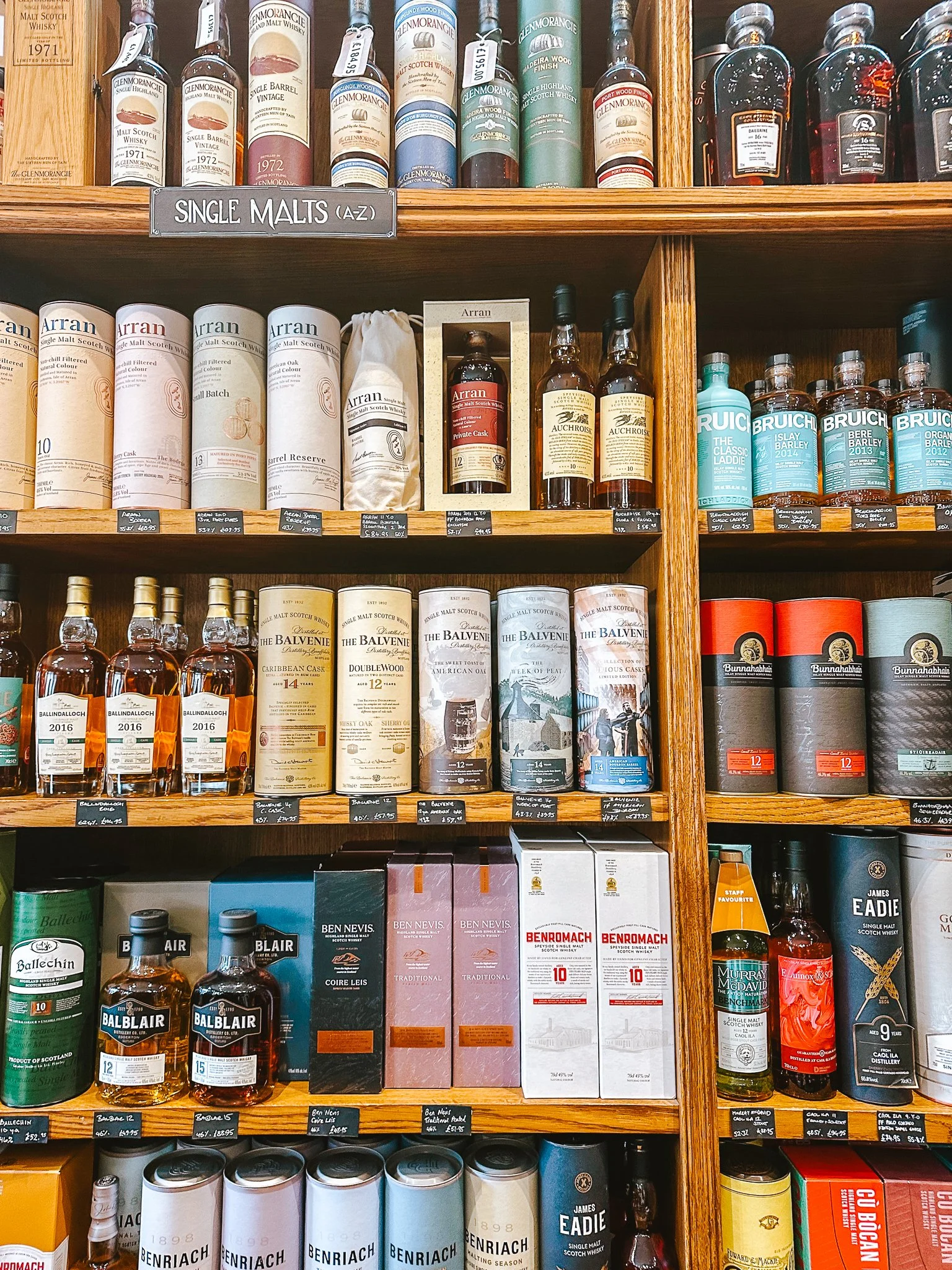 Scotch whiskey and gin (I personally bought a bottle of Craigellachie 13 and Edinburgh Gin)