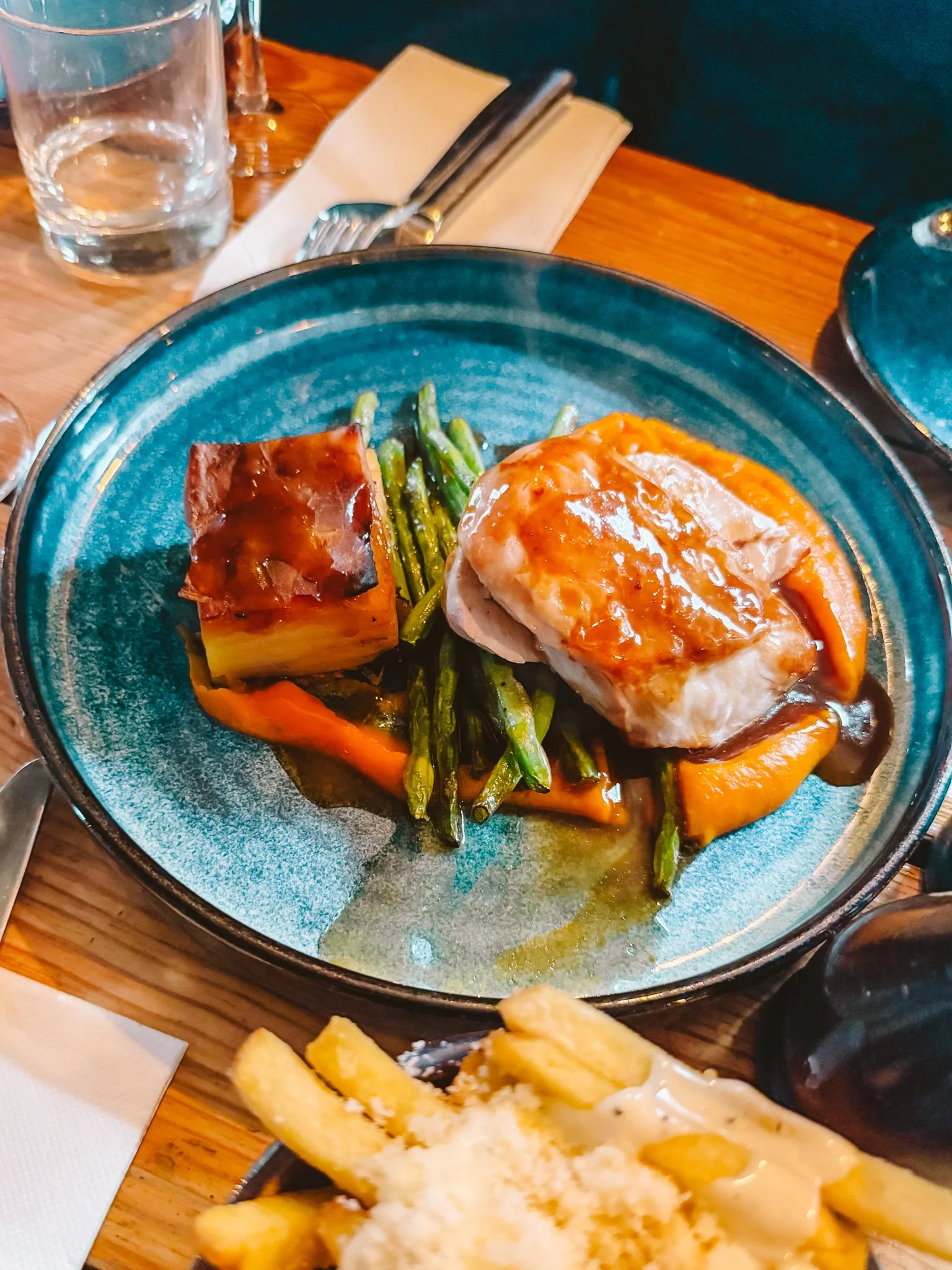 We concluded our Edinburgh trip with a delicious Scottish lunch at Devil’s Advocate. We also did our whiskey tasting here. Their selection of Scotch whiskies was phenomenal. The restaurant is tucked away in a narrow alley called Advocate’s Close. You need to climb down a couple of stairs to find it. The interiors are very rustic and homey, and the food was great. Please note that they change their menu every three months.What we tried: Scottish Road Trip & All About the Finish whiskey flights, truffle parmesan chips, chicken breast, pork fillet